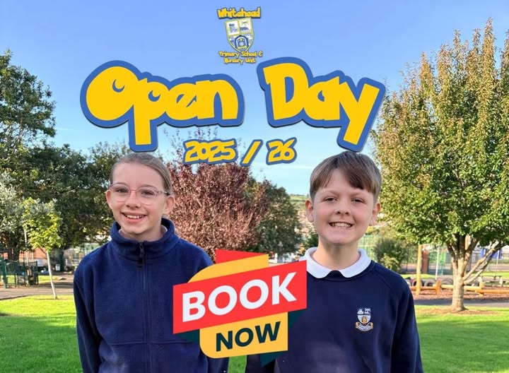 We would love it if you could join us at our Open Day on Friday 12th December 2025. This is your chance to meet our dedicated teachers, tour our facilities, and learn more about our curriculum. Discover why Whitehead Primary School & Nursery Unit is the perfect place for your child's education. If you are unavailable on this date, don't hesitate to contact our school office (028 9335 3280) and we can arrange an alternative day and time that suits.